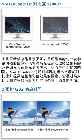 对比度(标准) : 1000:1 SmartContrast 对比度(动态) : 12000:1 |