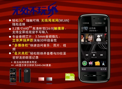 GPS定位系统 支持GPS,内置GPS导航芯片,支持A-GPS网络辅助导航功能,内置SiRFstar III GPS芯片,诺基亚地图